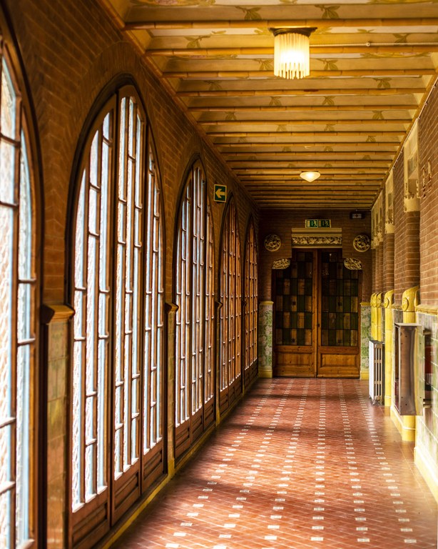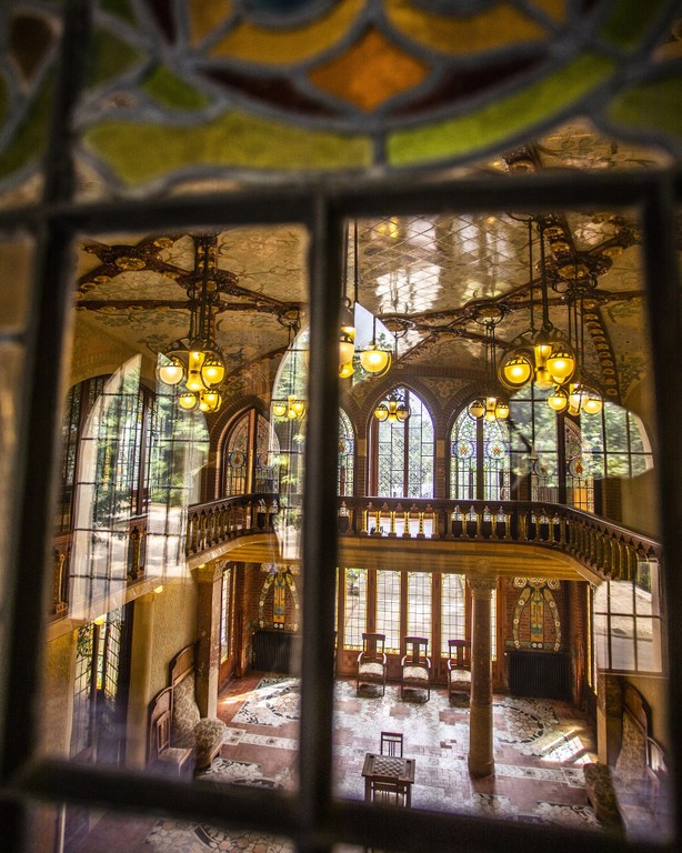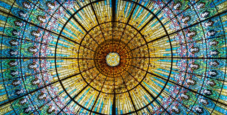 En 1904, l’Orfeó Català, organisme qui promeut les activités musicales de Barcelone depuis 1891, charge Lluís Domènech i Montaner de construire son siège et sa salle de concert dans les rues étroites du quartier de la Ribera à Barcelone. Cette œuvre est l’une des plus belles représentations du modernisme catalan, notamment pour son modèle d’intégration des arts appliqués à l’architecture. La mosaïque, les vitraux, la peinture et la sculpture sont les différentes techniques utilisées pour ornementer l’intérieur comme l’extérieur de ce bâtiment époustouflant. La coupole inversée en verre polychrome surplombant la salle de spectacle, est une œuvre remarquable de cet édifice.