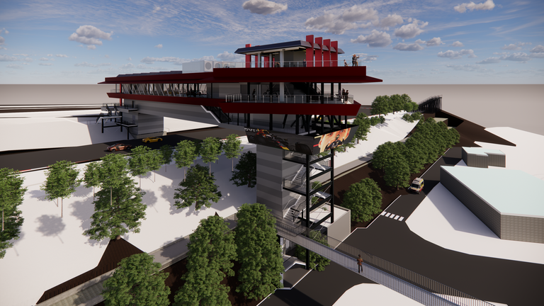 Son excellent emplacement offre les vues les plus spectaculaires sur la piste du circuit. Le toit, relie le paddock avec la zone du stade, en passant par les virages 9, 10 et 11 et l’entrée de la ligne droite principale.